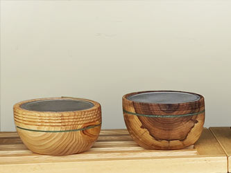 Die von Hand gedrechselten Räucherschalen werden liebevoll aus edlen zum Teil seltenen Hölzern gefertigt. So gibt es z.B. Red Cedar, Atlas Zeder, Thuja, Erle, Birke, Walnuss, Eberesche oder Apfelholz. Jede ist ein ganz besonderes Einzelstück - vor allem mit einem eingearbeiteten Inlay- Ring aus Türkis, Malachit oder anderen Halbedelsteinen.
