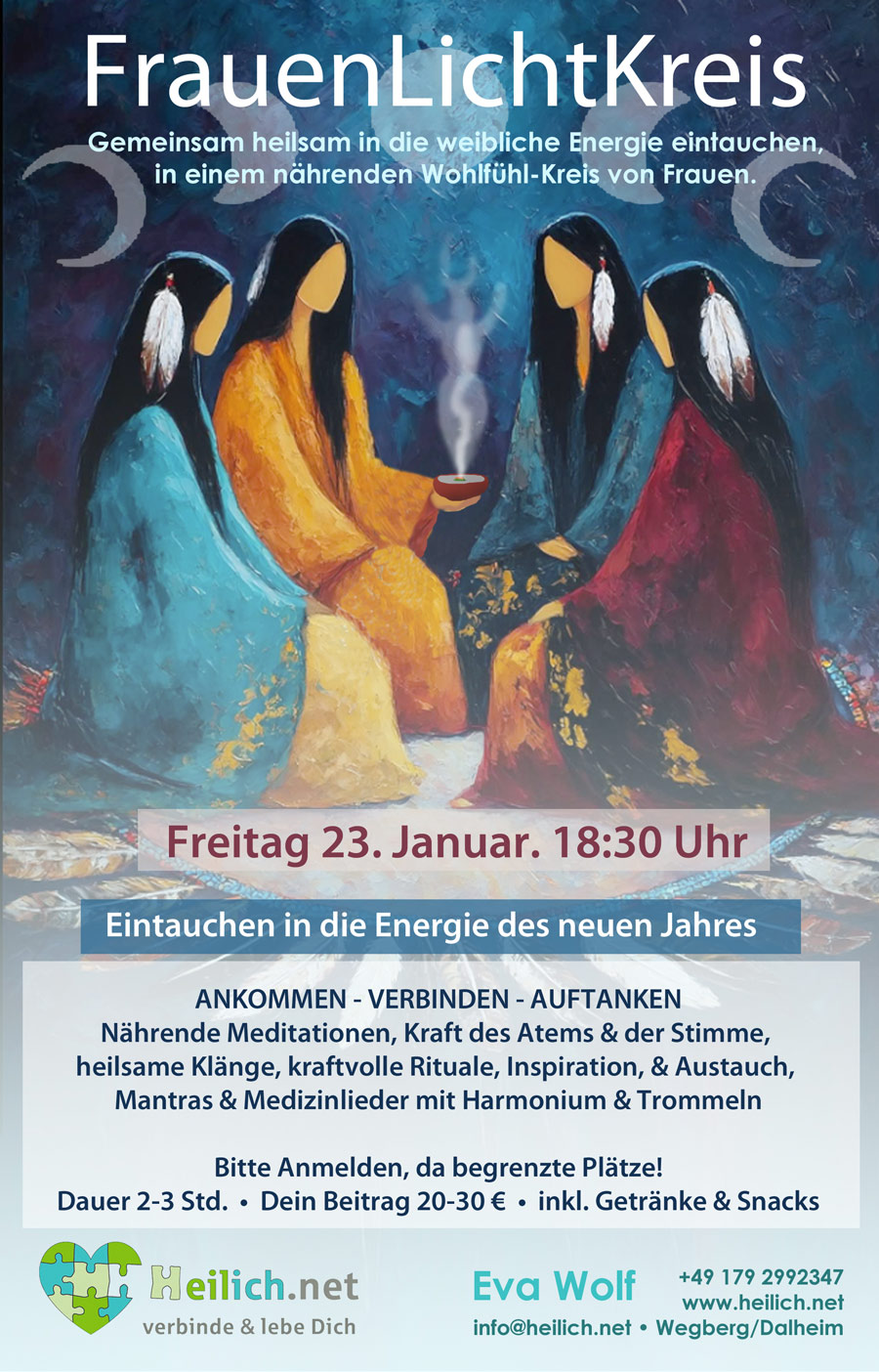 Gemeinsam heilsam teilen wir unser Licht und lassen es noch heller strahlen, wir meditieren, tauschen uns aus, singen, nutzen kraftvolle Rituale, tauchen ein in die weibliche Energie...